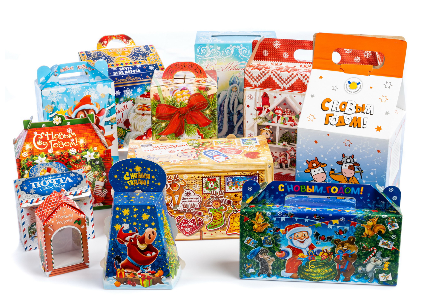Упаковка для новогодних подарков, малого (100 г) и большого объемов (2 кг).